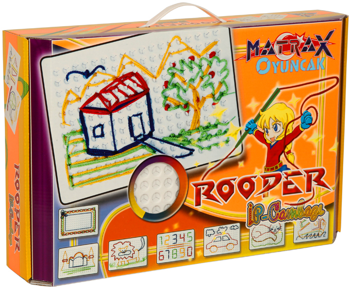 içinden çıkan şekil kartonları sayesinde ipleri ile şekillerin üzerinden giderek desenler yaratacaksınız.